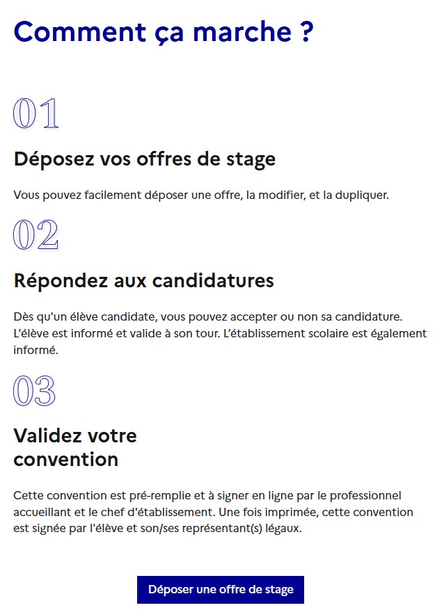 - Déposer une offre : 1élève1stage.education.gouv.fr